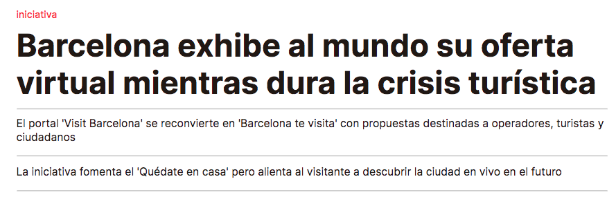 Digital strategy for keeping Visit Barcelona ON during COVID-19 lockdown.